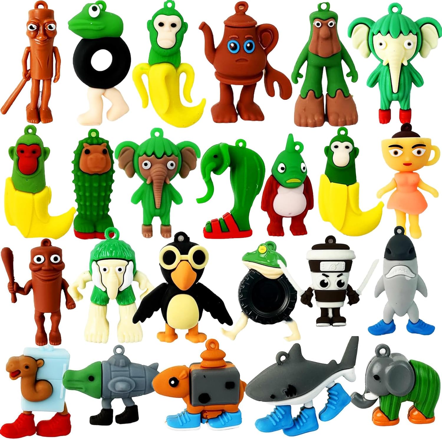 24Pcs Italian Brainrot Toys, Tralalero Tralala Action Figure Tung Tung Tung Sahur Figure 2.5in Funny Animals, Unique Key Chain, Decorations Gifts for Fans