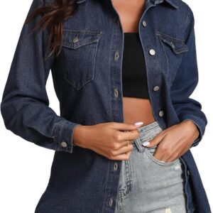 Argstar Denim Jacket for Women Button Up Long Sleeve with Pockets (Available in Inner Pockets)