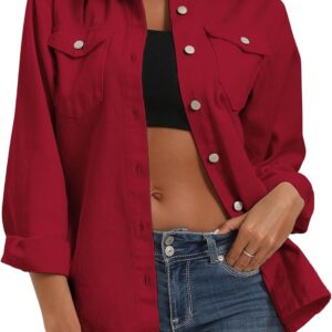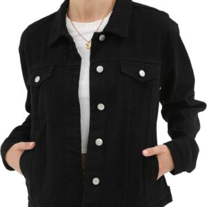 Argstar Denim Jacket for Women Button Up Long Sleeve with Pockets (Available in Inner Pockets)