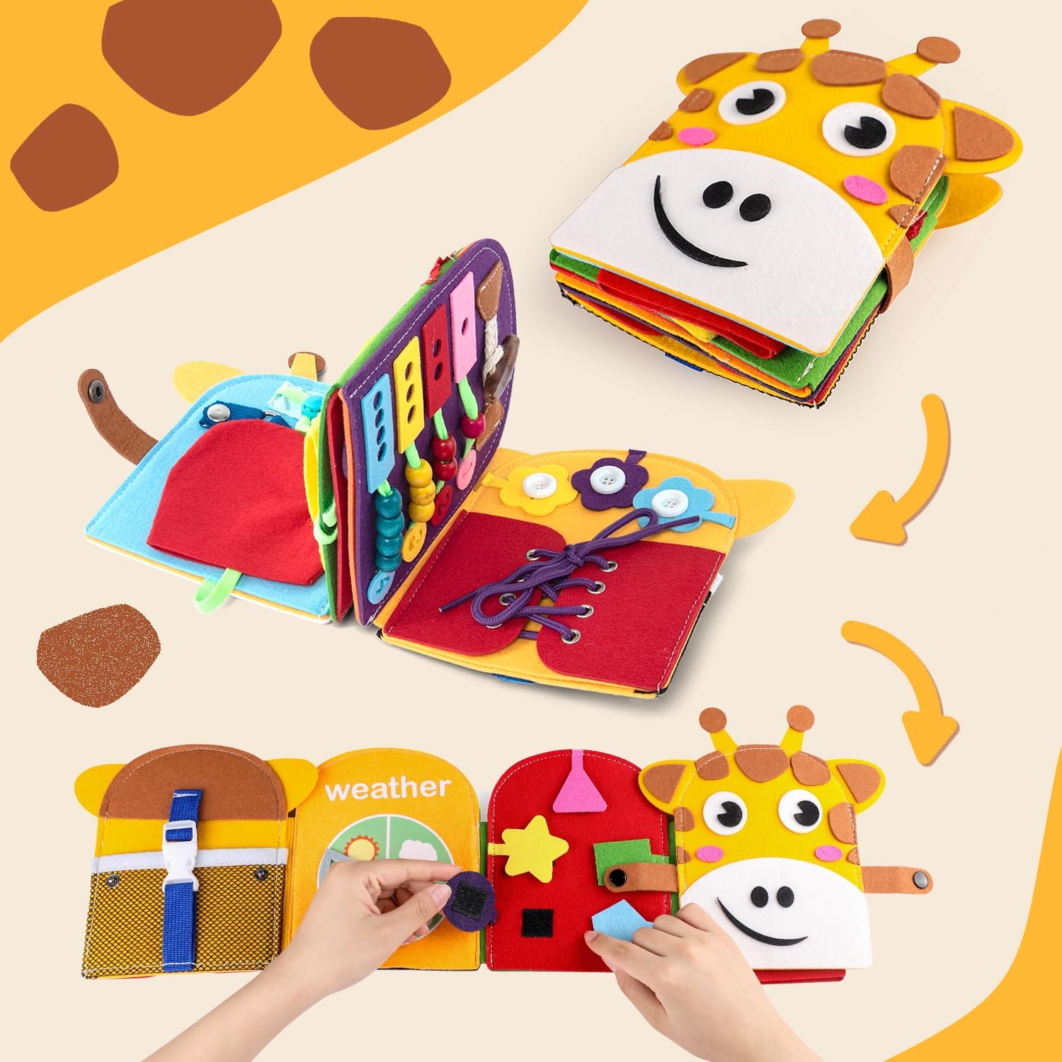 Busy Book for Toddlers 1-3, Montessori Sensory Toys for Kids Age 1-3, Preschool Learning Activities Fine Moto Skills and Early Developmental Education, Ideal for Educational Travel Toys.