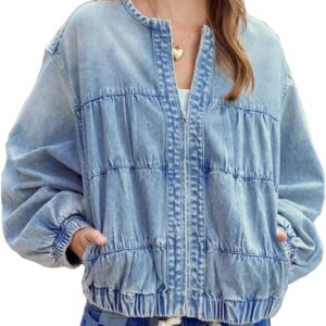 CHOUYATOU Women's Cute Floral Print Denim Bomber Jacket