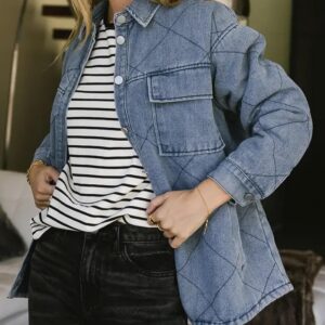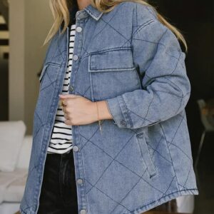 Dokotoo Denim Jacket for Women Fashion Solid Oversized Long Sleeve Button Down Shacket Jacket Coat with Pockets