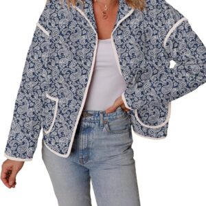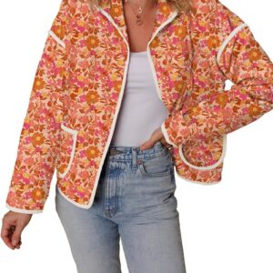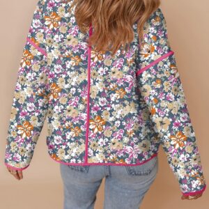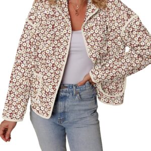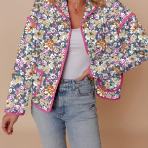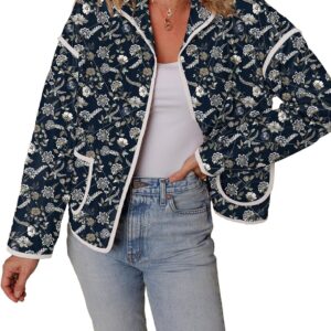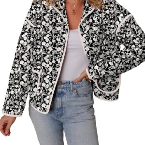 Dokotoo Warm Quilted Jackets for Women Long Sleeve Floral Print Button Down Puffer Jacket Coats with Pockets