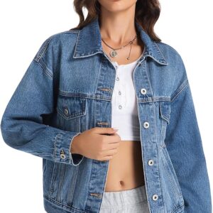 EG CHRIS G Women’s Denim Jacket Loose Relaxed Fit with Pocket Trucker Jean Jacket Coats