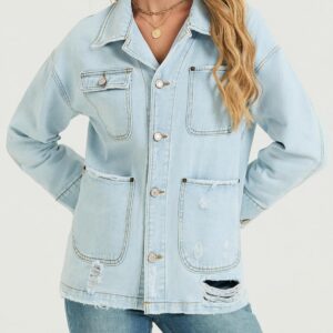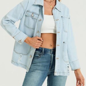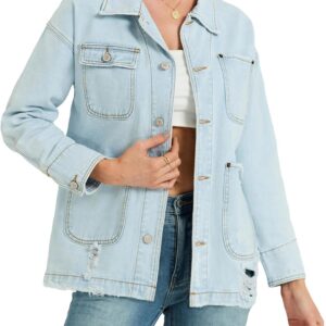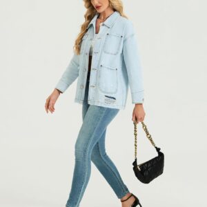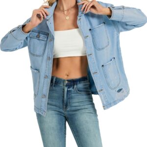 EZAPINE Women Long Sleeve Oversized Denim Jacket