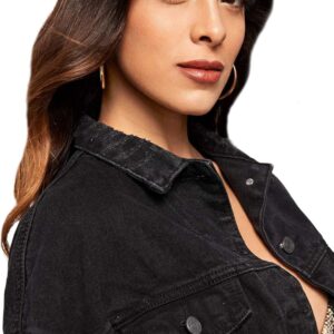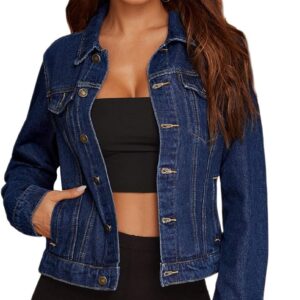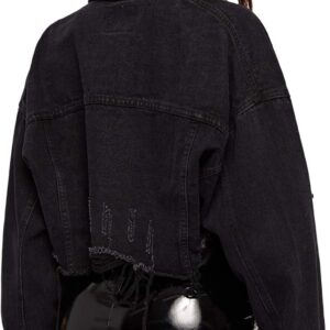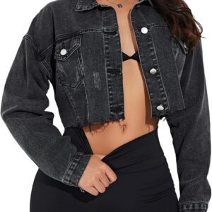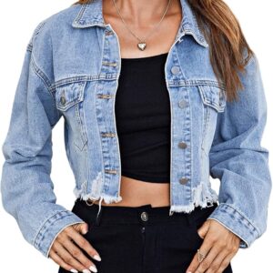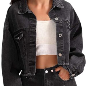 Floerns Women's Casual Drop Shoulder Ripped Crop Denim Jacket