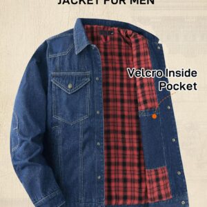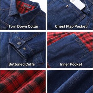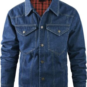 Flygo Mens Flannel Lined Denim Jacket Snap Cowboy Cut Western Classic Slim Fit Vintage Heavy Duty Jacket Trucker Coat(NavyBlue-XL)