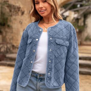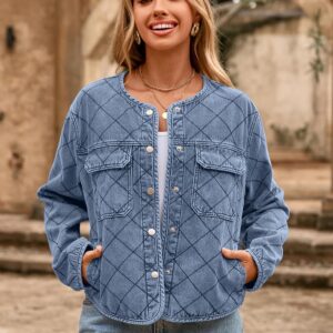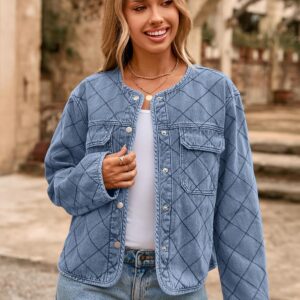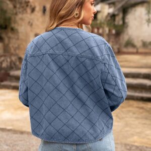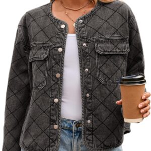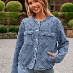 Glamaker Jean Jacket Women Denim Long Sleeve Button Down Diamond Quilted Lightweight Jackets Fall Winter Shacket Coats