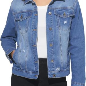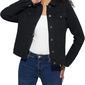 HISEA Denim Jacket for Women, Womens Jean Jackets with Long Sleeves, Women’s Basic Trucker Coat with Snap for Fall, Black