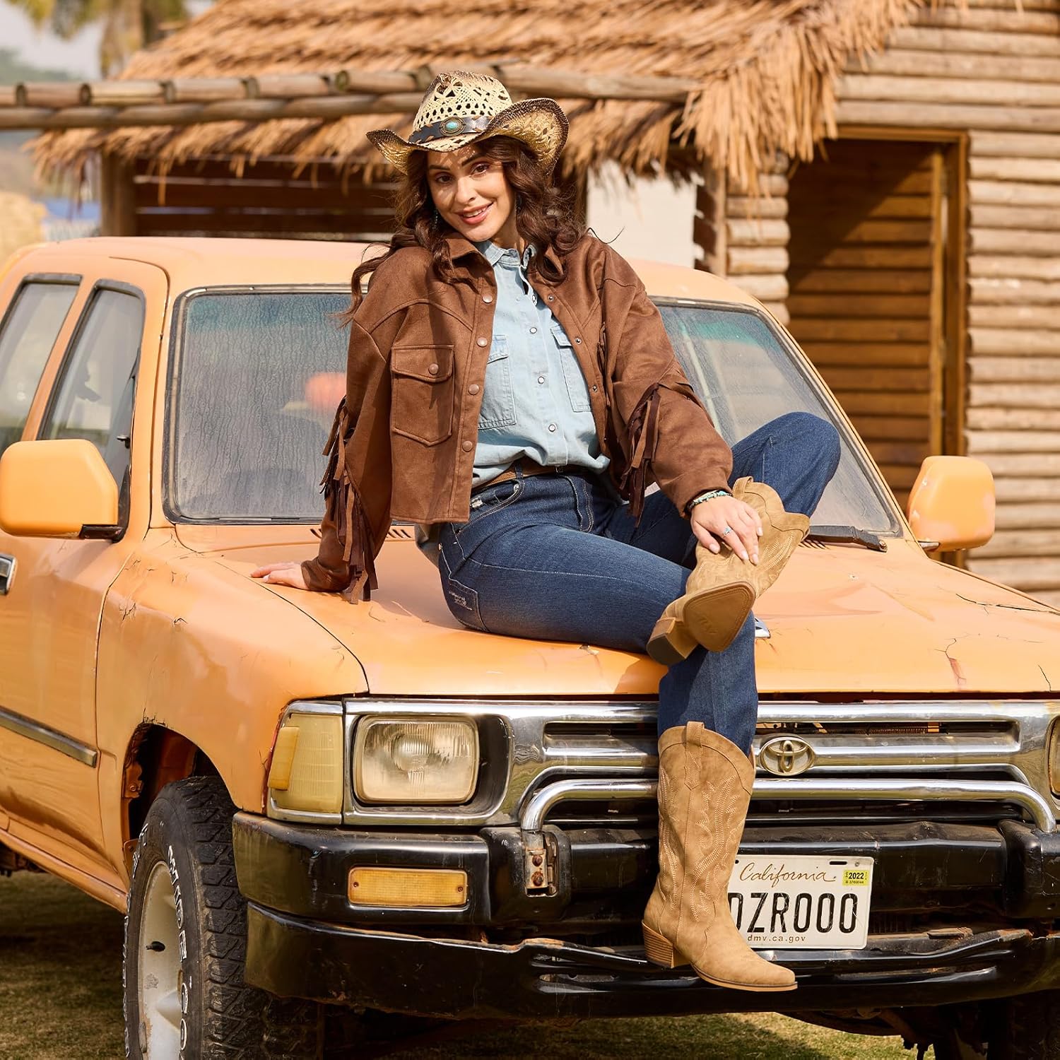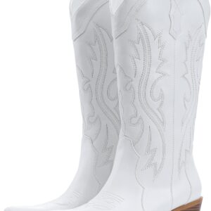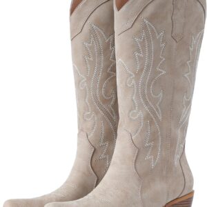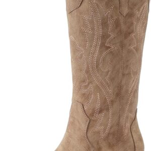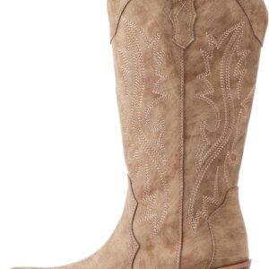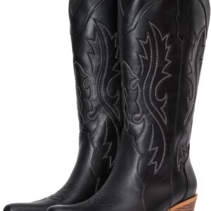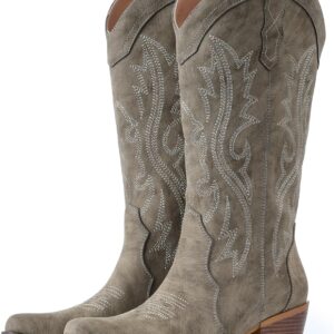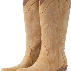 IUV Cowboy Boots For Women Western Cowgirl Boots with Chunky Heel Mid Calf Snip Toe Ideal for low insteps