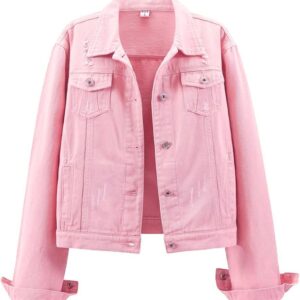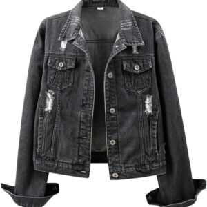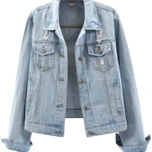 Kedera Womens Denim Jackets Distressed Ripped Long Sleeve Jean Jacket Coats