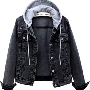 LifeShe Women’s Casual Detachable Hoodie Denim Jacket