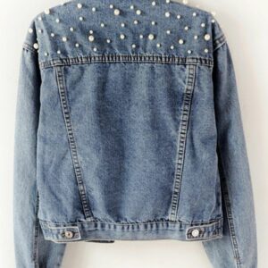 LifeShe Women’s Embroidered Pearl Denim Jean Jacket Coat