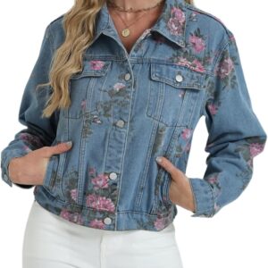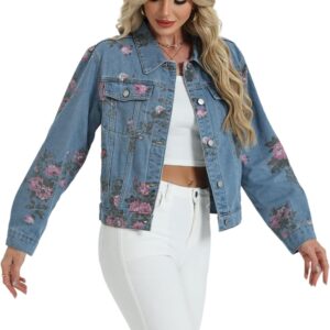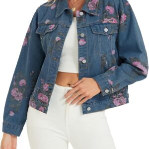 LifeShe Women’s Jean Jacket Floral Button Up Cropped Denim Jackets Western Outfit With Pockets