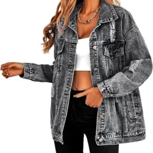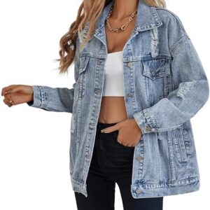 LifeShe Women’s long oversized denim jacket boyfriend ripped distressed jean jackets coat