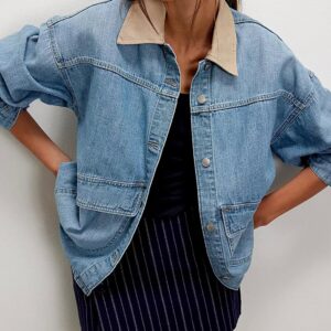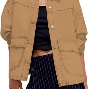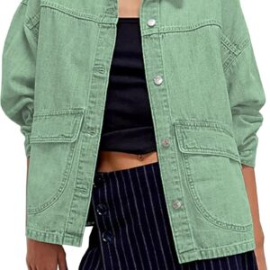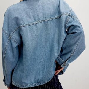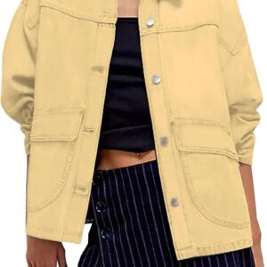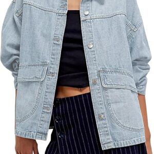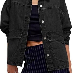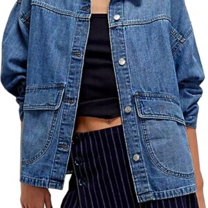 Lumister Women’s Oversized Denim Jacket with Contrast Trim Long Sleeve Button Down Jean Coat with Pockets Outerwear