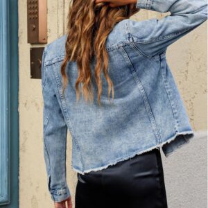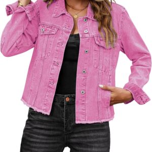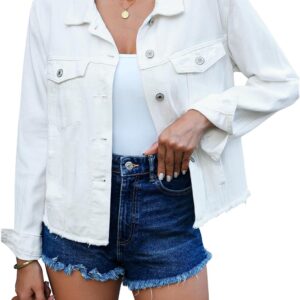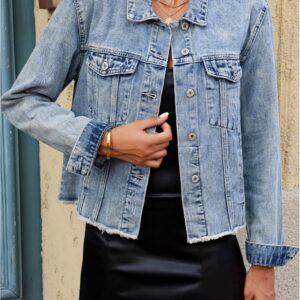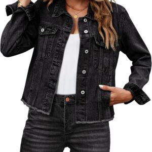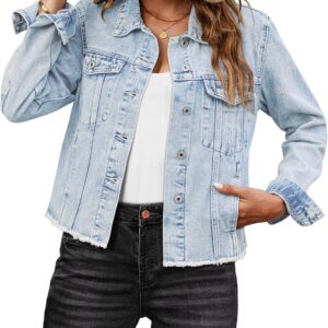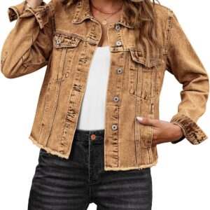 luvamia Denim Jacket for Women Distressed Jean Jackets Button Up Vintage Western Trucker Jacket Frayed Hem Pockets