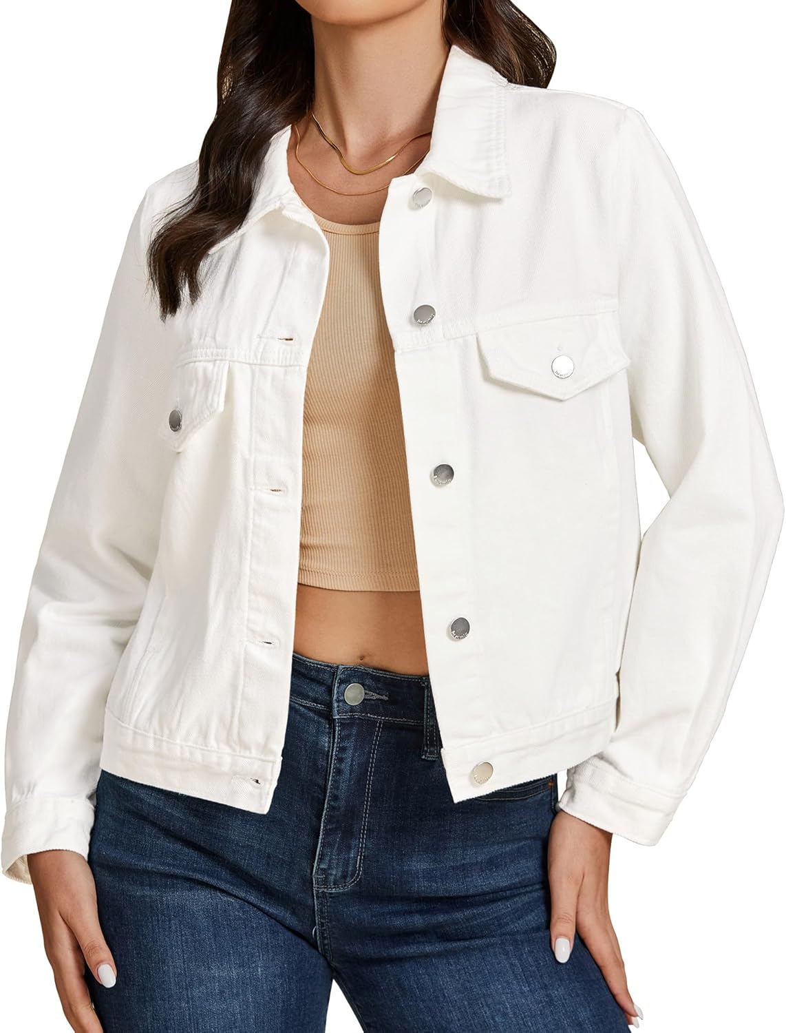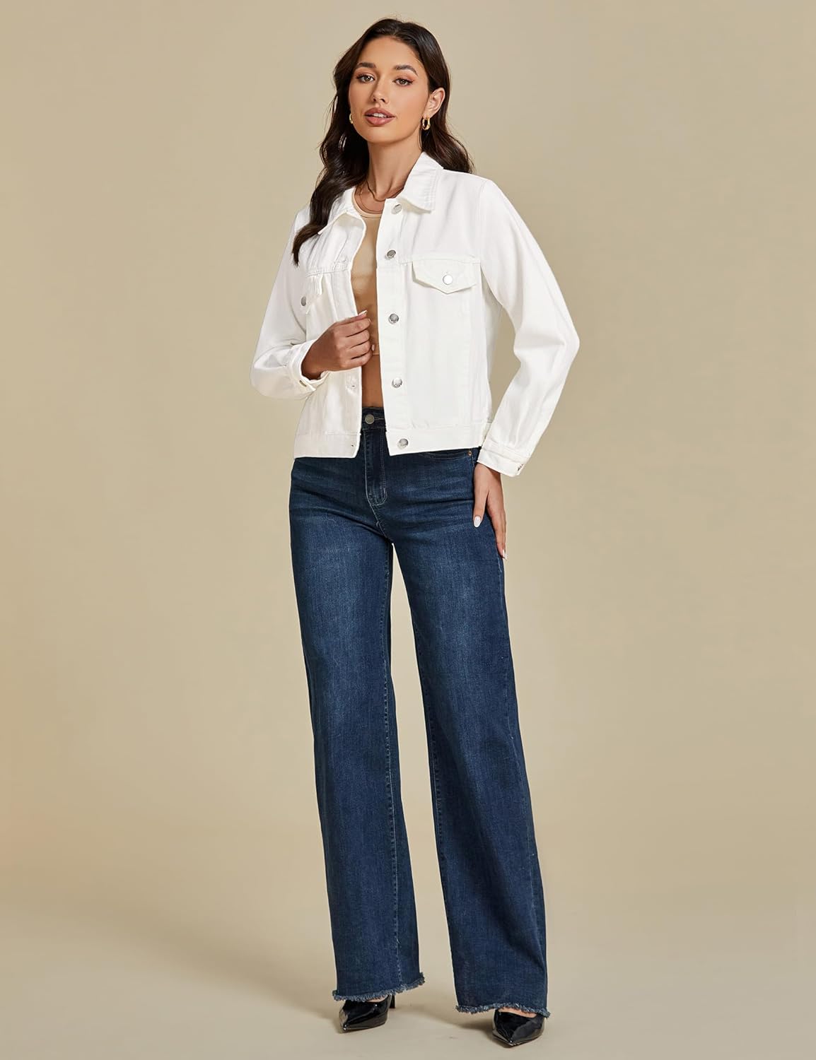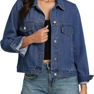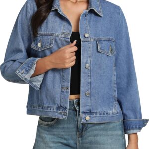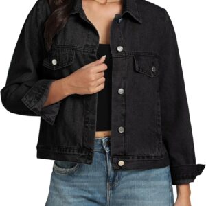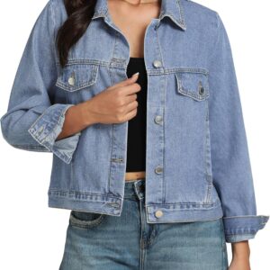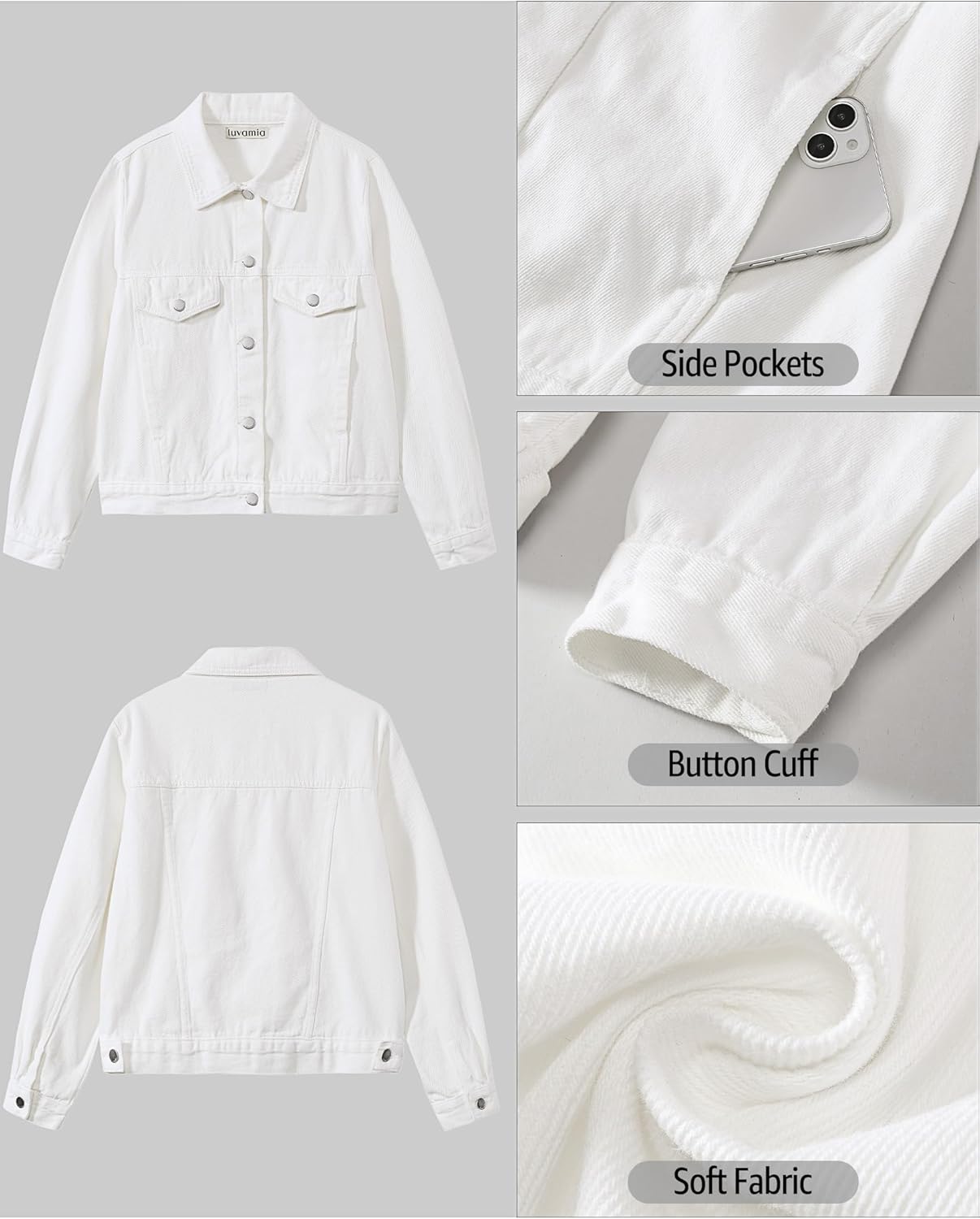 luvamia Denim Jackets for Women Trendy Casual Button Down Relaxed Fit Western Trucker Distressed Jean Jacket with Pocket