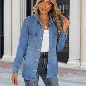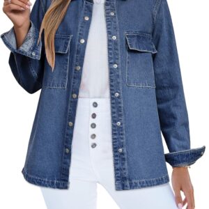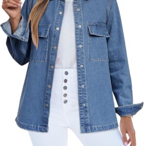 luvamia Jean Jackets for Women 2025 Fall Fashion Oversized Button Down Denim Jacket Western Shacket Jacket with Pockets
