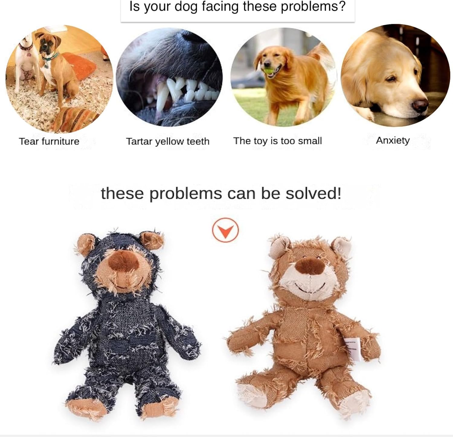 MAXBECK Dog Companion for Heavy Chewers- Indestructible Robust Bear Dog Toy, Resistant Squeaky Dog Toys for Heavy Chewers, Unbreakable Stuffed Plush Dog Toys for Aggressive Chewers (A-Navy)