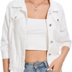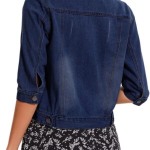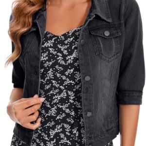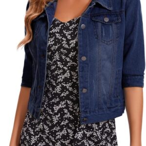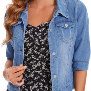 - 【Features】Classic Denim style Designed with a classic turn-down collar, 3/4 sleeves, button-down closure, and functional side pockets. The tailored short-cut silhouette enhances your proportions, adding a modern touch to your wardrobe.