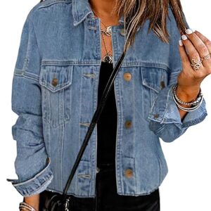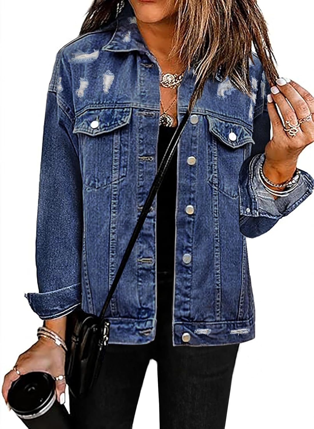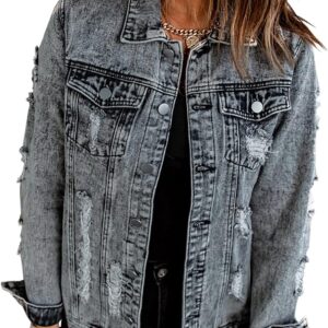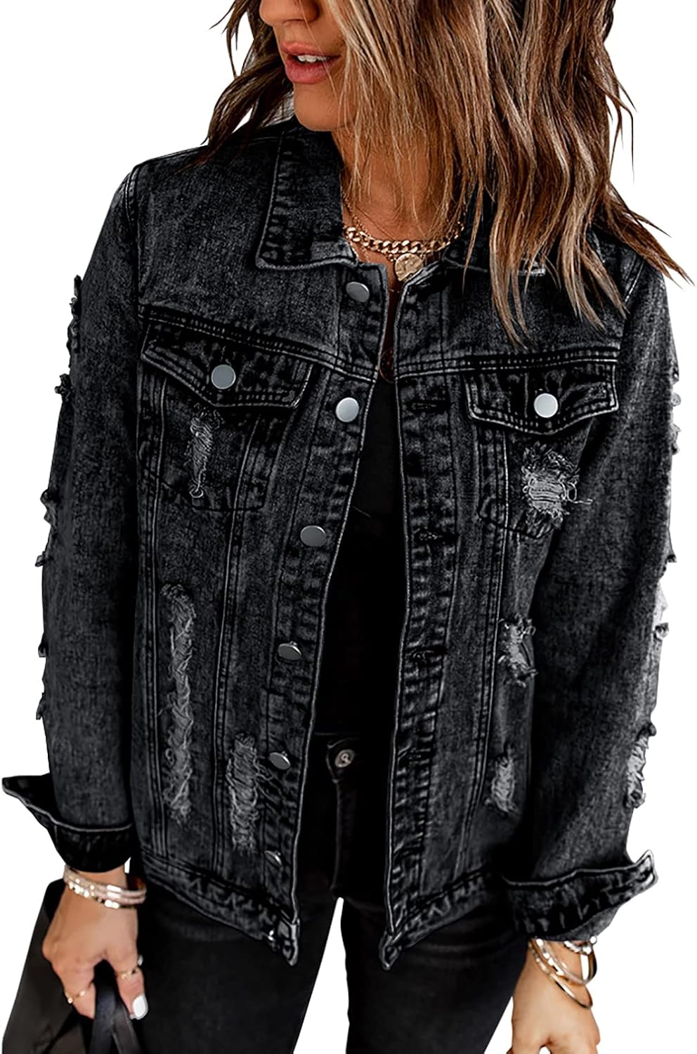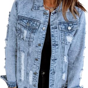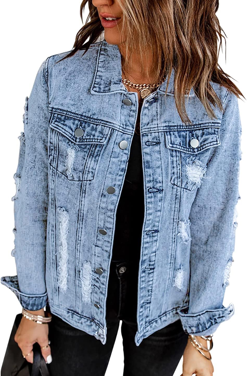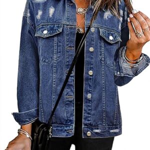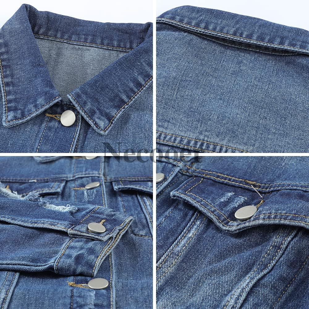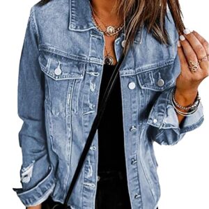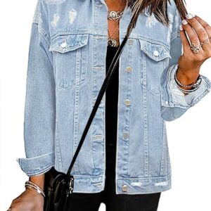 Necooer Women’s Jean Jacket Distressed Washed Button Up Boyfriend Denim Jacket Coat With Pockets