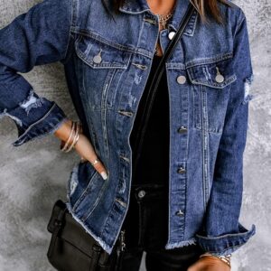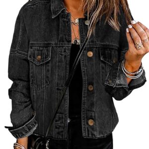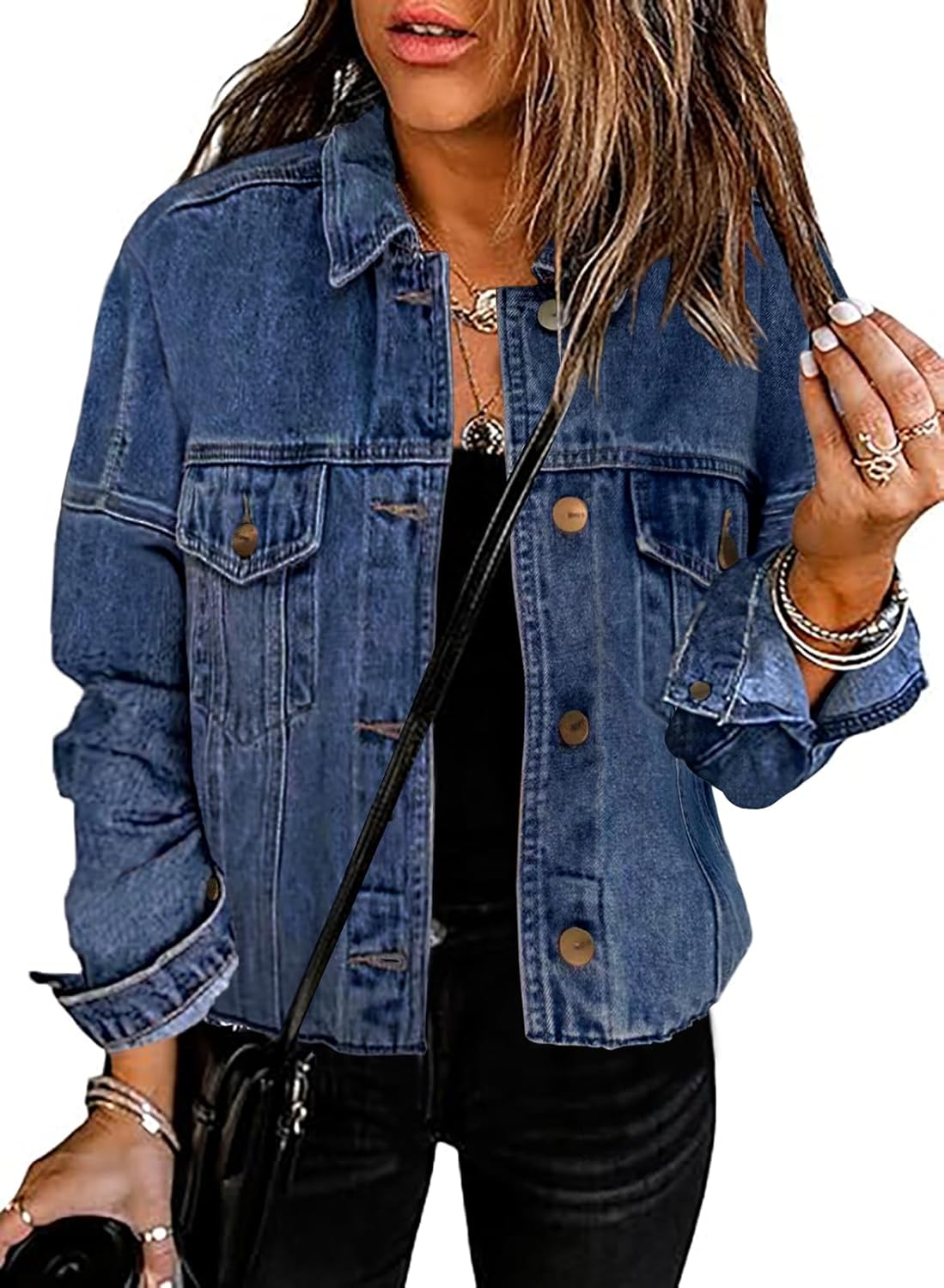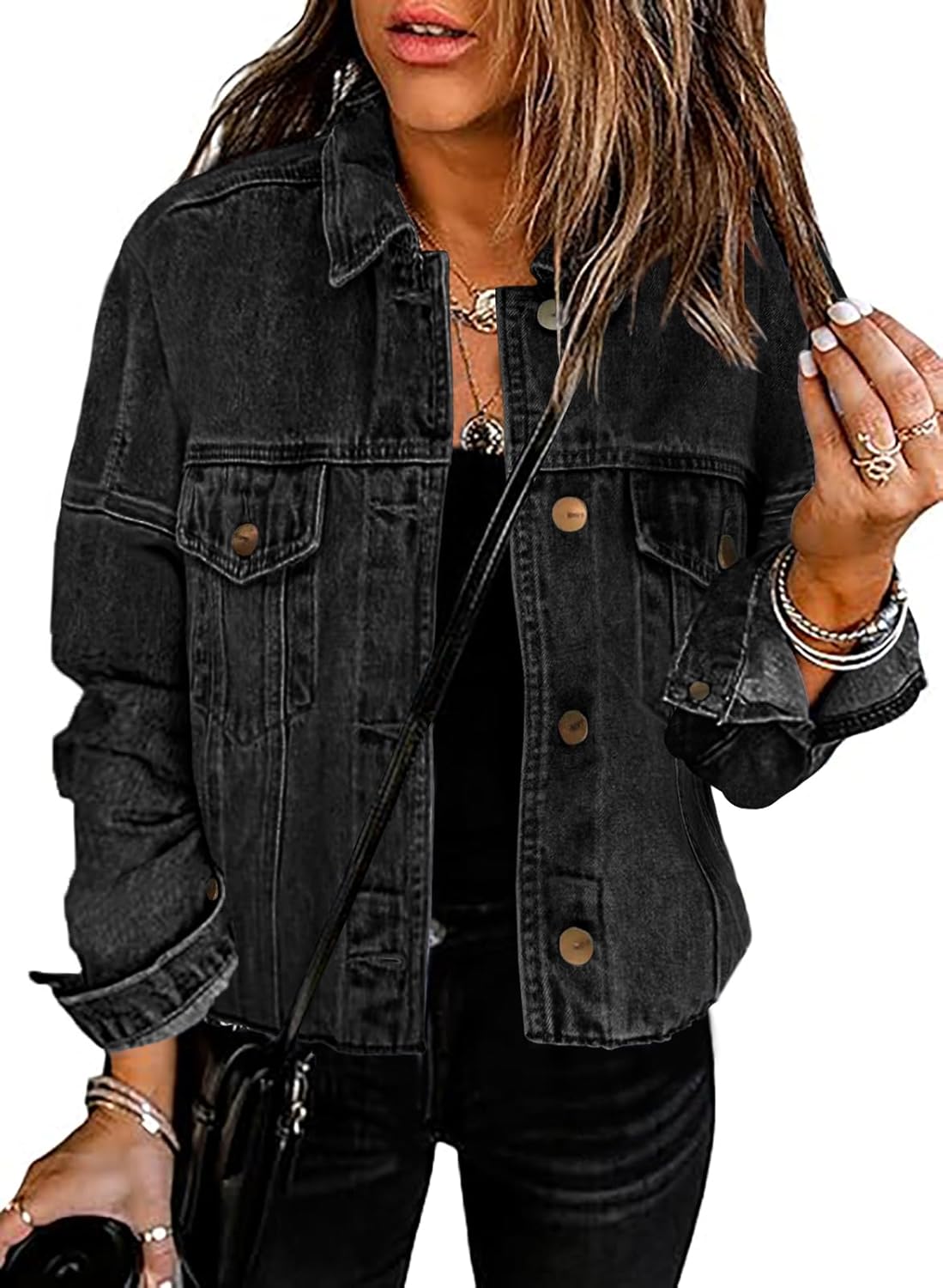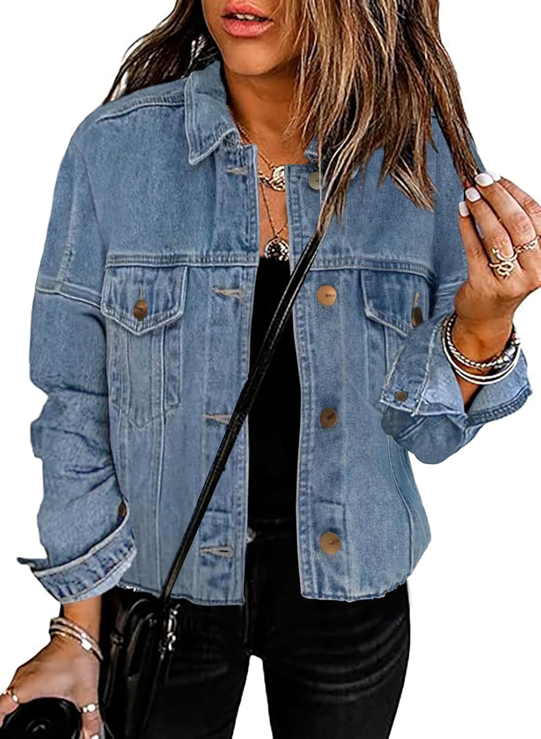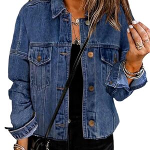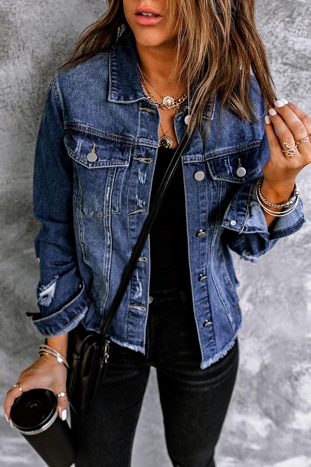 Necooer Women’s Jean Jacket Distressed Washed Button Up Boyfriend Denim Jacket Coat With Pockets