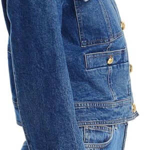 Retro denim jacket maintains a consistent tone of elevated,trendy,and versatile style.