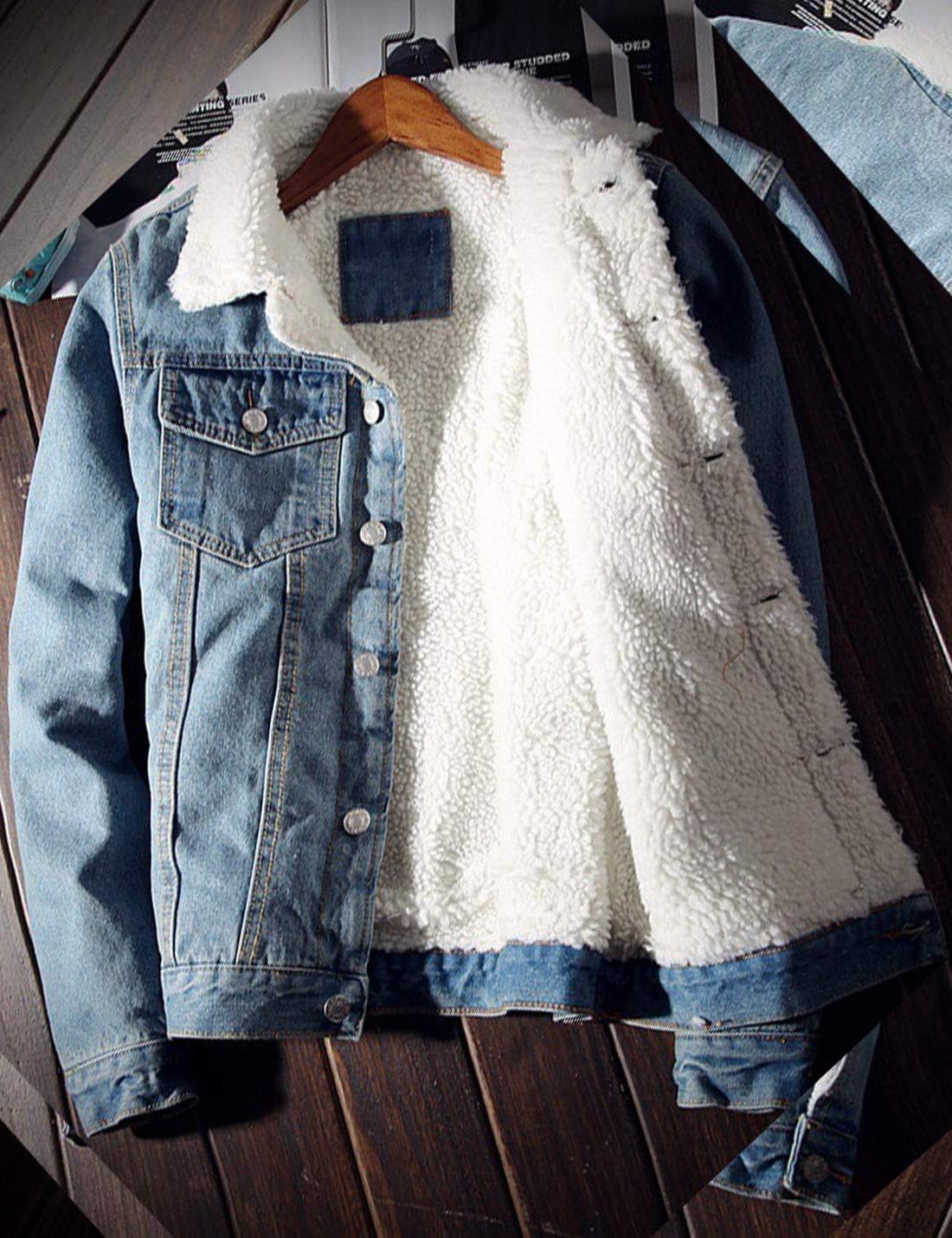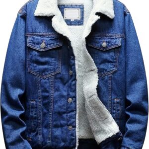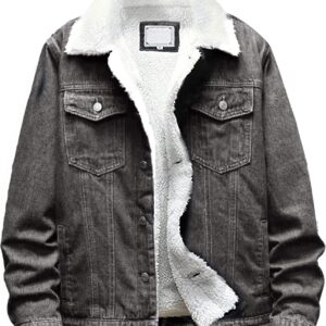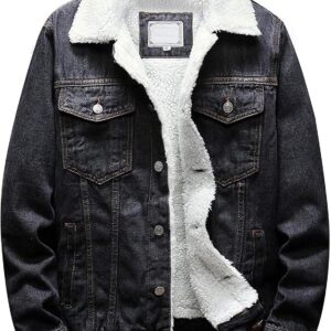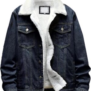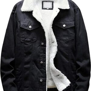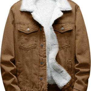 Omoone Men’s Lapel Sherpa Fleece Lined Thicken Denim Jean Trucker Jacket Coats