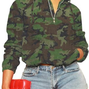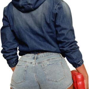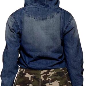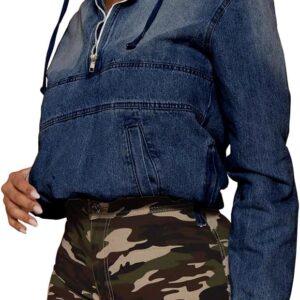 PINSV Women’s Half Zip Denim Hoodie Pullover Jacket Jean Sweatshirt Tops
