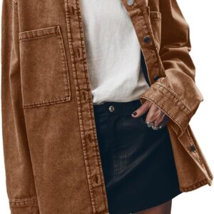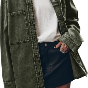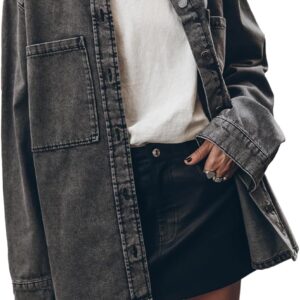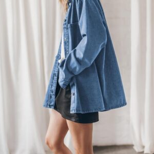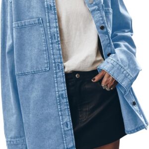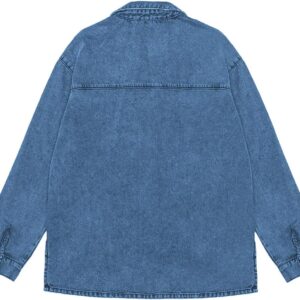 Women Blue Oversized Jean Jackets Loose Fit Button Down Denim Jacket Coat