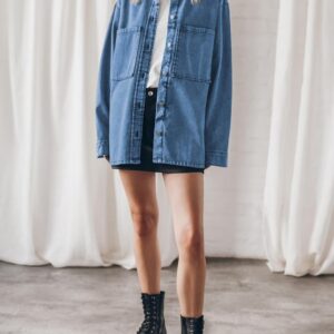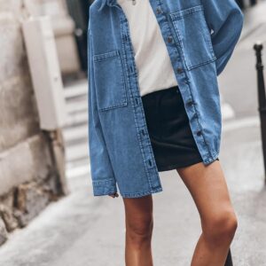 Ladies Fashion Button Denim Overshirt Casual Summer Solid Color Jean Overshirt