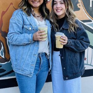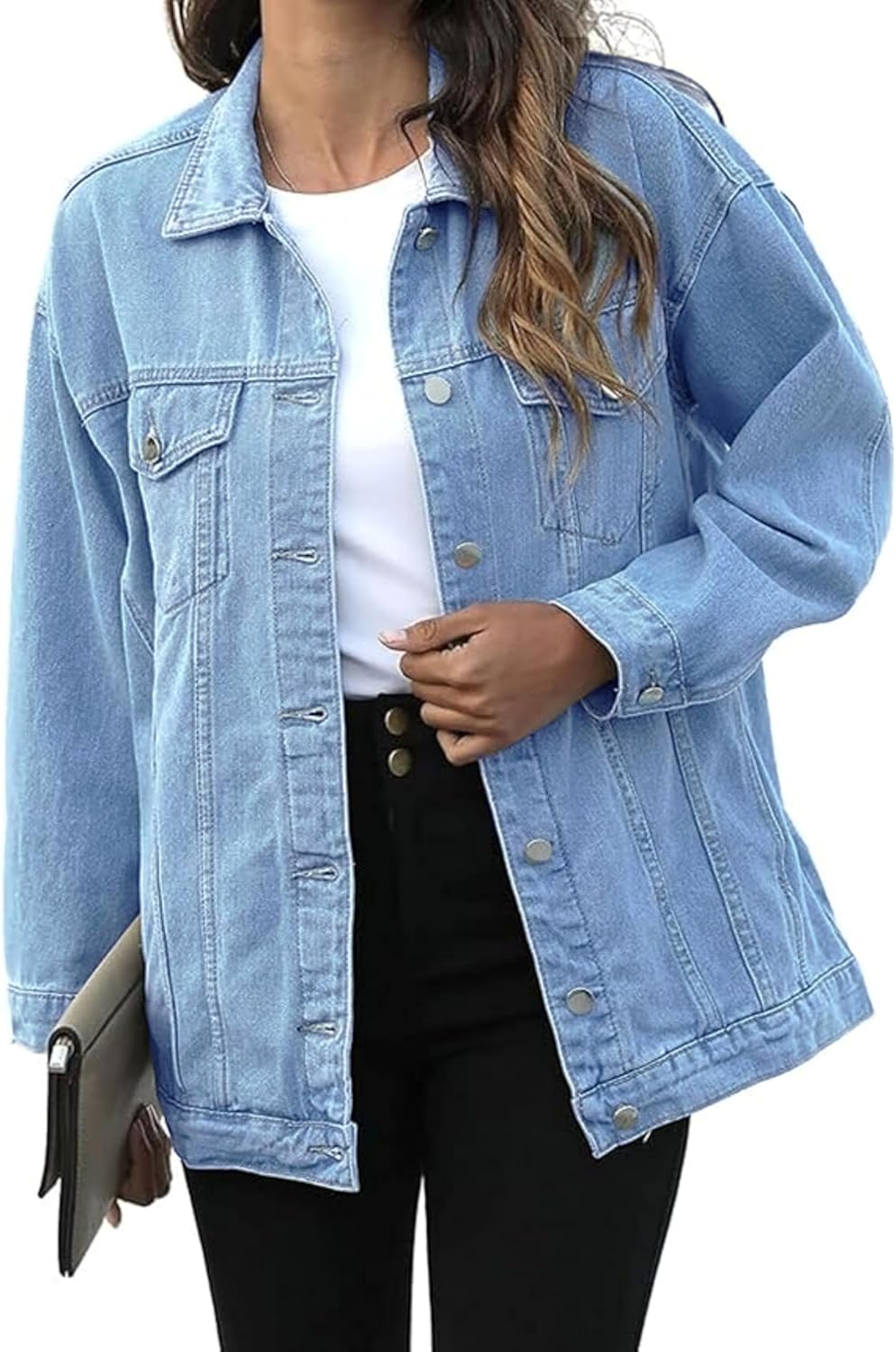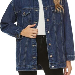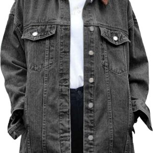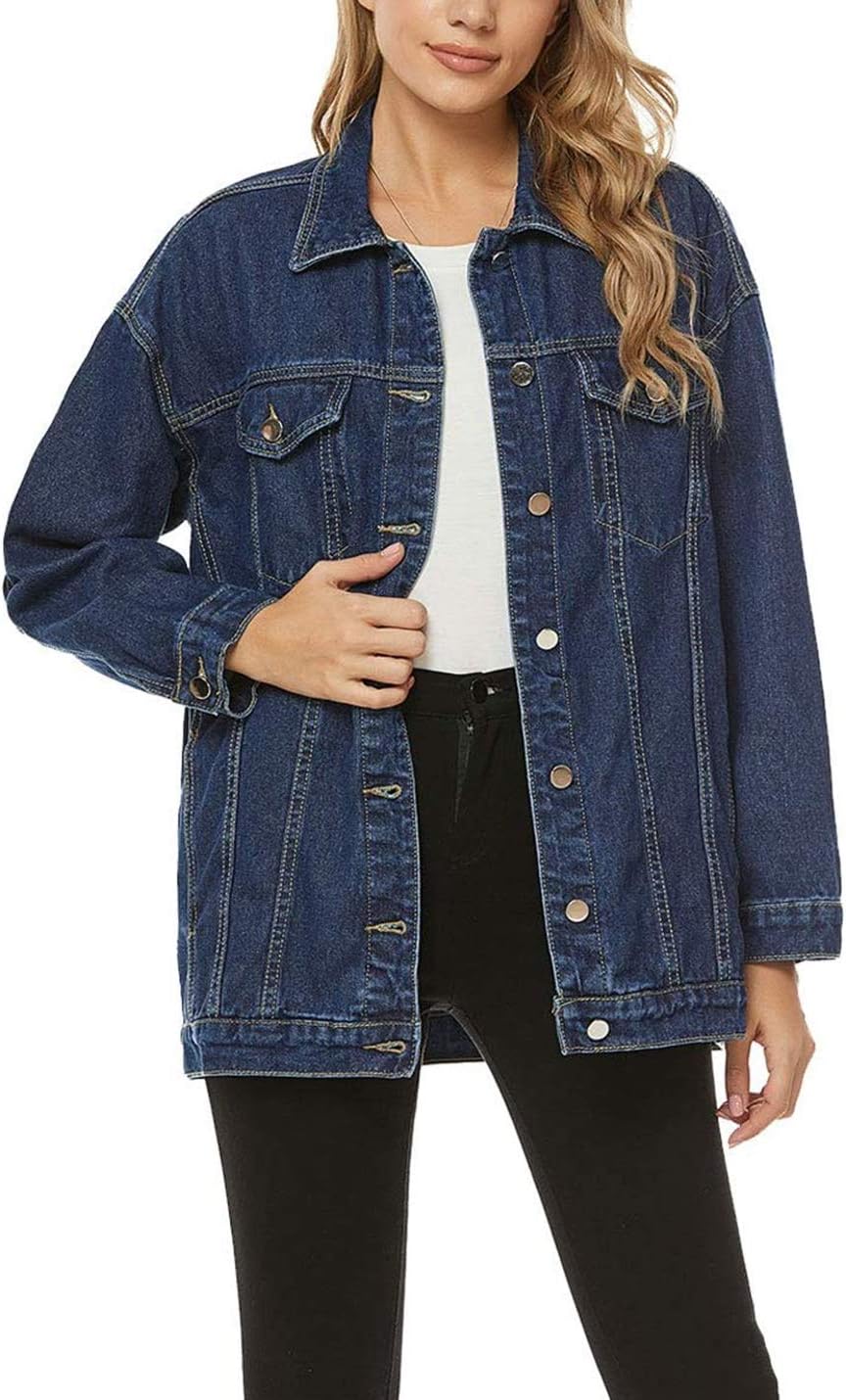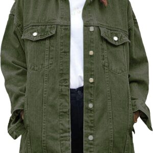 SeekMe Women’s Oversized Jean Jacket Plus Size Button Down Washed Mid Long Denim Jacket