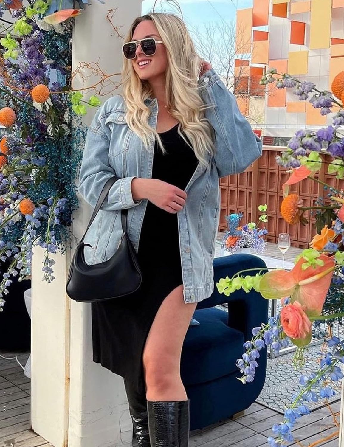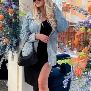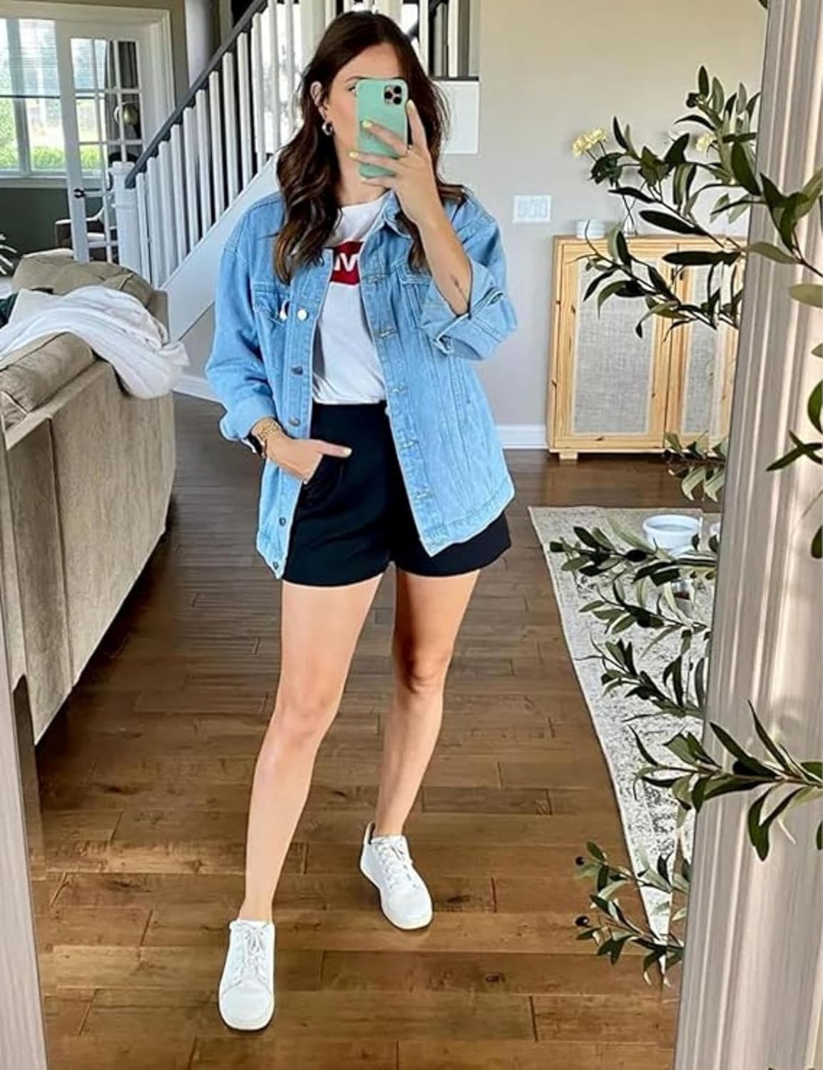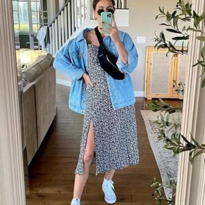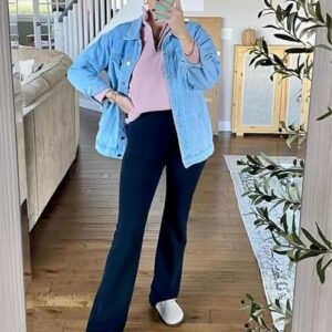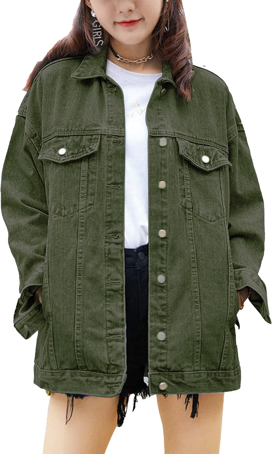 SeekMe Women’s Oversized Jean Jacket Plus Size Button Down Washed Mid Long Denim Jacket