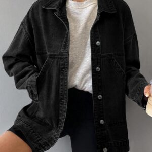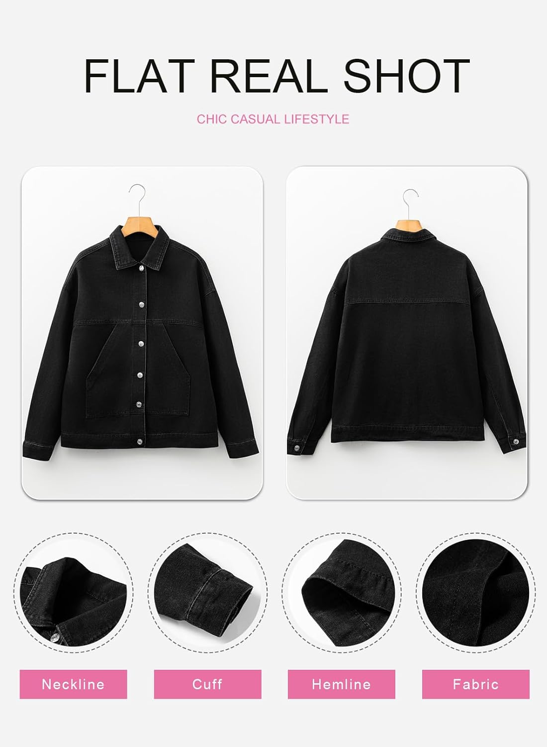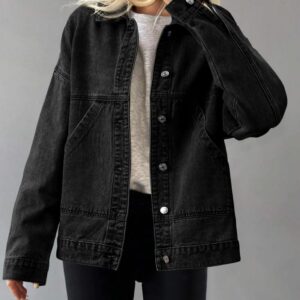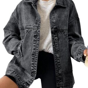SHEWIN Womens Denim Jacket Casual Long Sleeve Drop Shoulder Button Front Jean Jacket Coat With Pockets