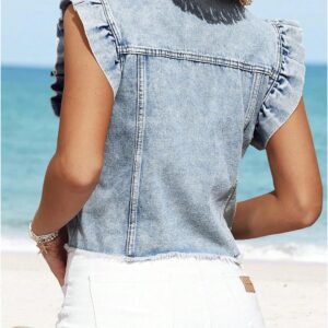 SOLY HUX Women’s Denim Jacket Ruffle Cap Sleeve Button Down Trendy Jean Jackets Coat