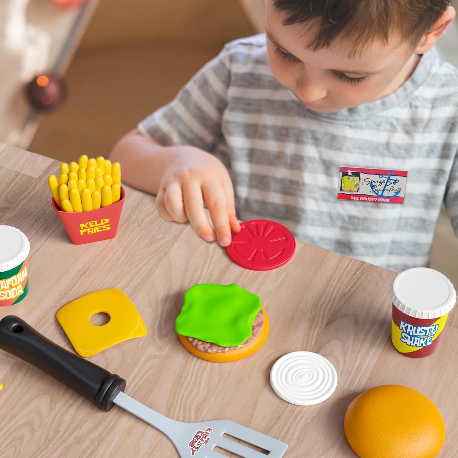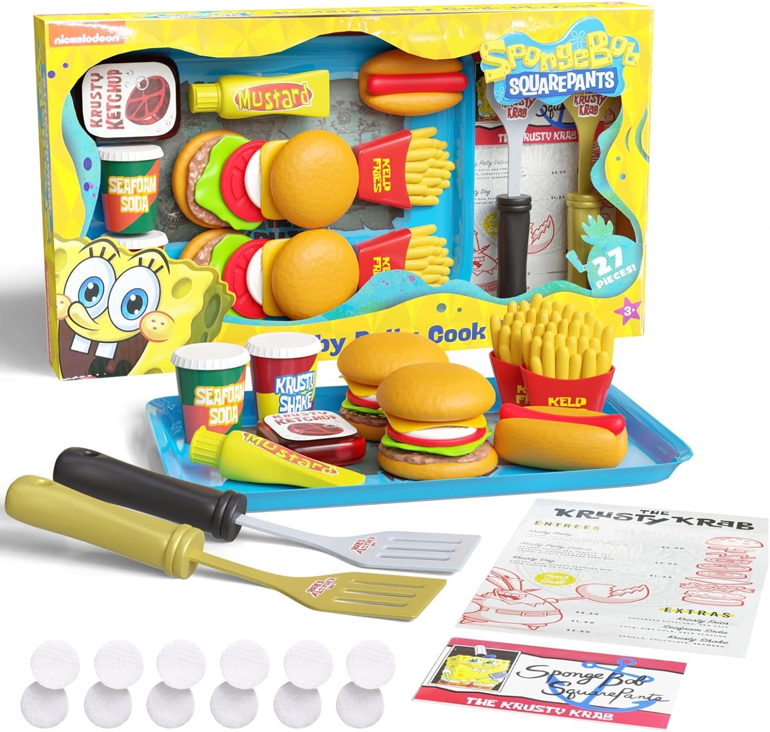 Spongebob Kids Kitchen Playset - Interactive Play Food with 2 Krabby Patty Burgers, Seafoam Shake, Kelp Fries, Spongebob Toys Kitchen Set for Kids Ages 3-5 Includes Velcro Dots