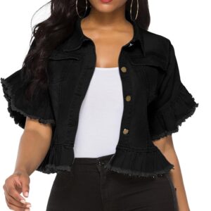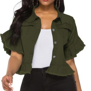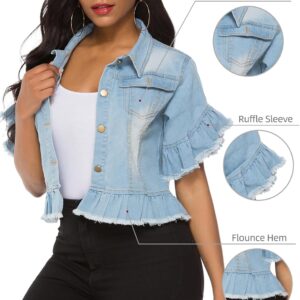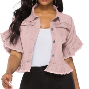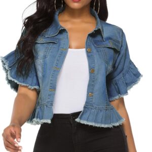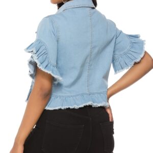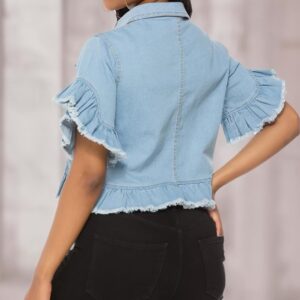 Women's Denim Jacket Button Down Ruffle Sleeve Crop Jean Jackets
