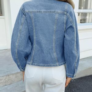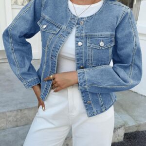 Tankaneo Womens Cropped Jean Jacket Trendy Crewneck Button Down Short Denim Jacket Y2k Slim Fit Casual Shacket
