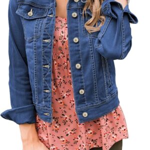 Vetinee Womens Stretch Button Down Long Sleeve Pockets Denim Jean Trucker Jacket