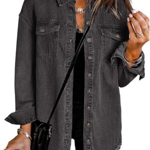 Vetinee Women\u2019s Oversized Button Up Frayed Hem Shacket Long Sleeve Pockets Denim Jean Jacket