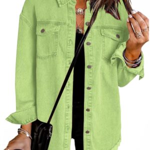 Women’s Oversized Denim Jacket Lightweight Button Down Long Jean Jacket Casual Boyfriend Distresse Jacket Coats