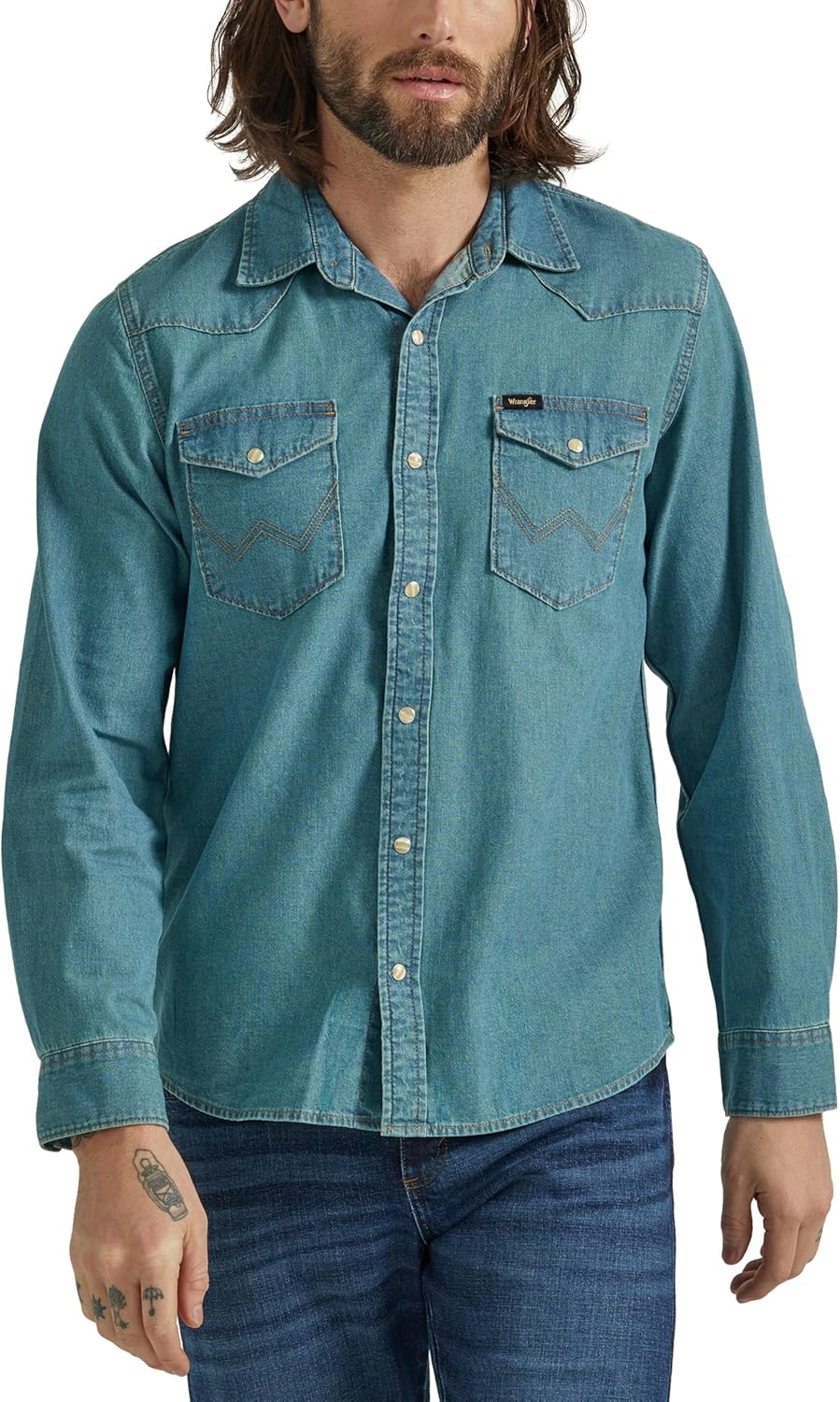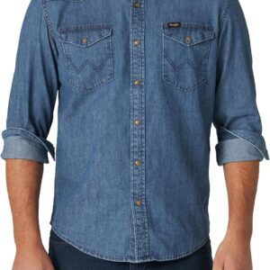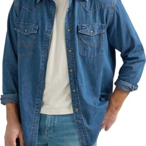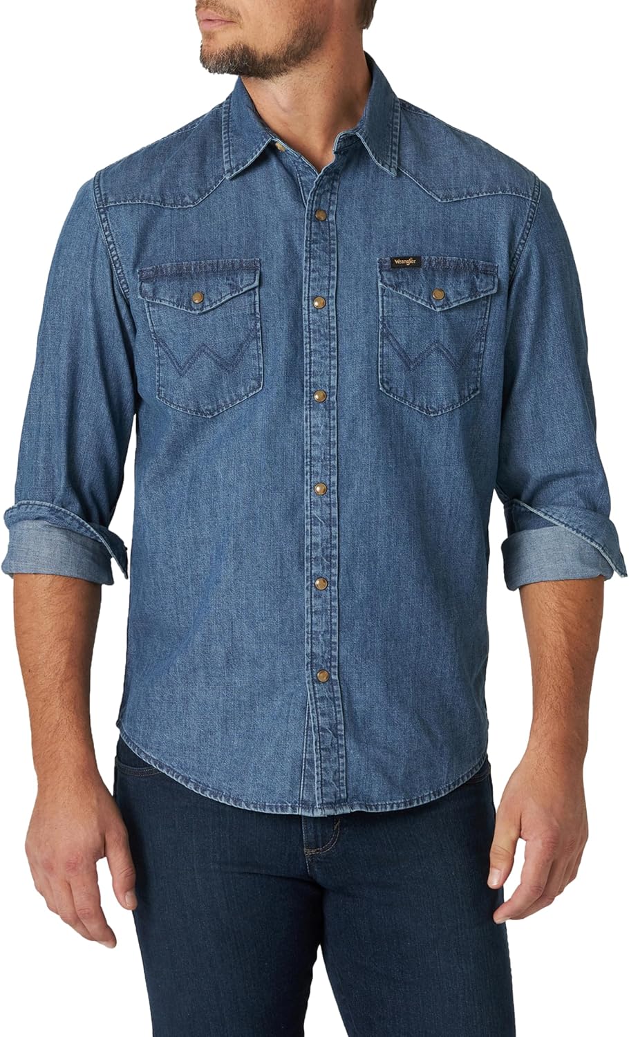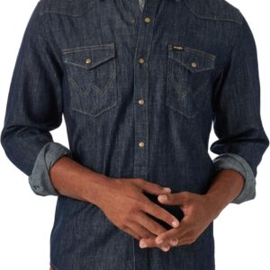 Wrangler Men’s Iconic Denim Regular Fit Snap Shirt
