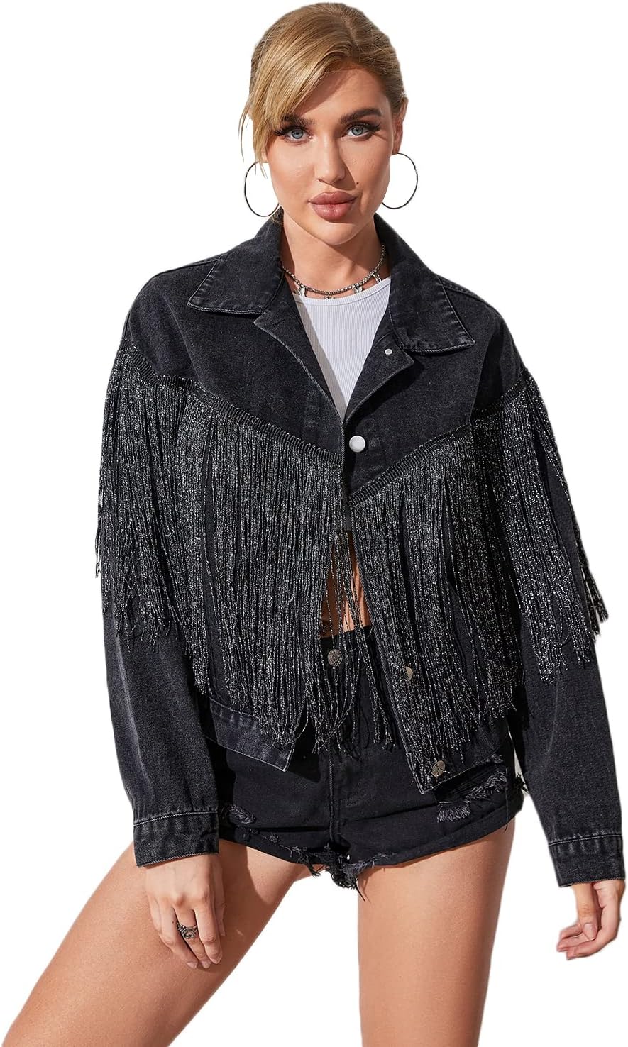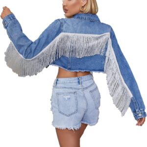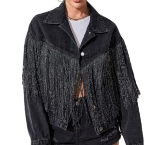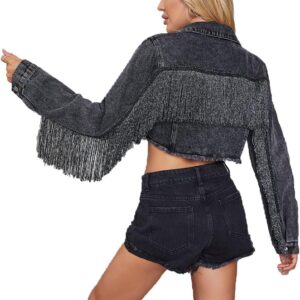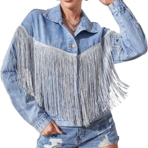 Women’s Crop Denim Jacket Tassel Casual Jean Coat With Fringe