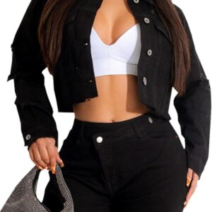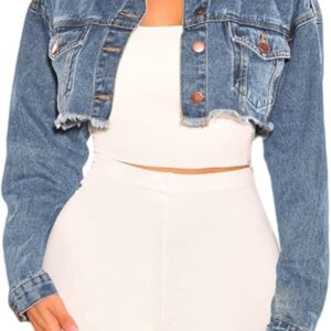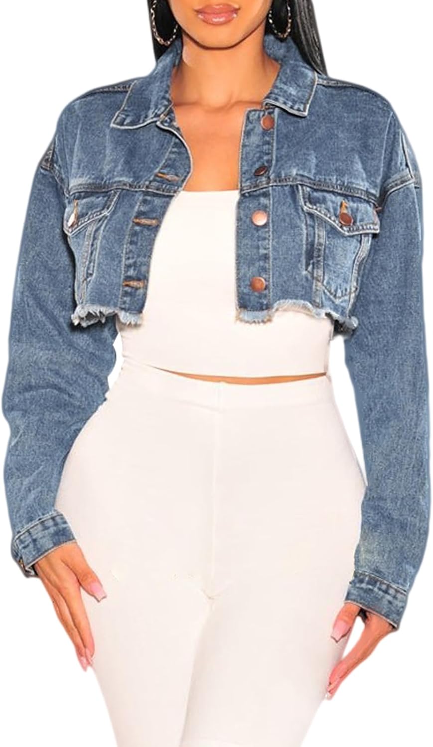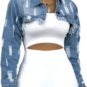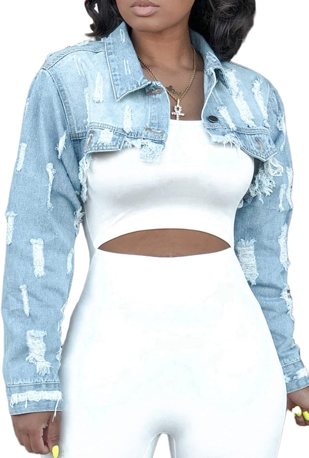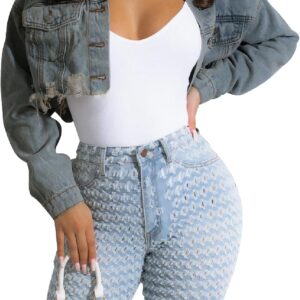 YouSexy Cropped Denim Jackets for Women Long Sleeve Destroyed Wash Jean Jackets